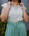 O destaque fica por conta do bordado floral artesanal, que lembra um crochê delicado, conferindo um charme especial e uma textura diferenciada à camisa. Os botões no punho adicionam um toque sofisticado, além de permitir ajuste perfeito para o seu conforto.